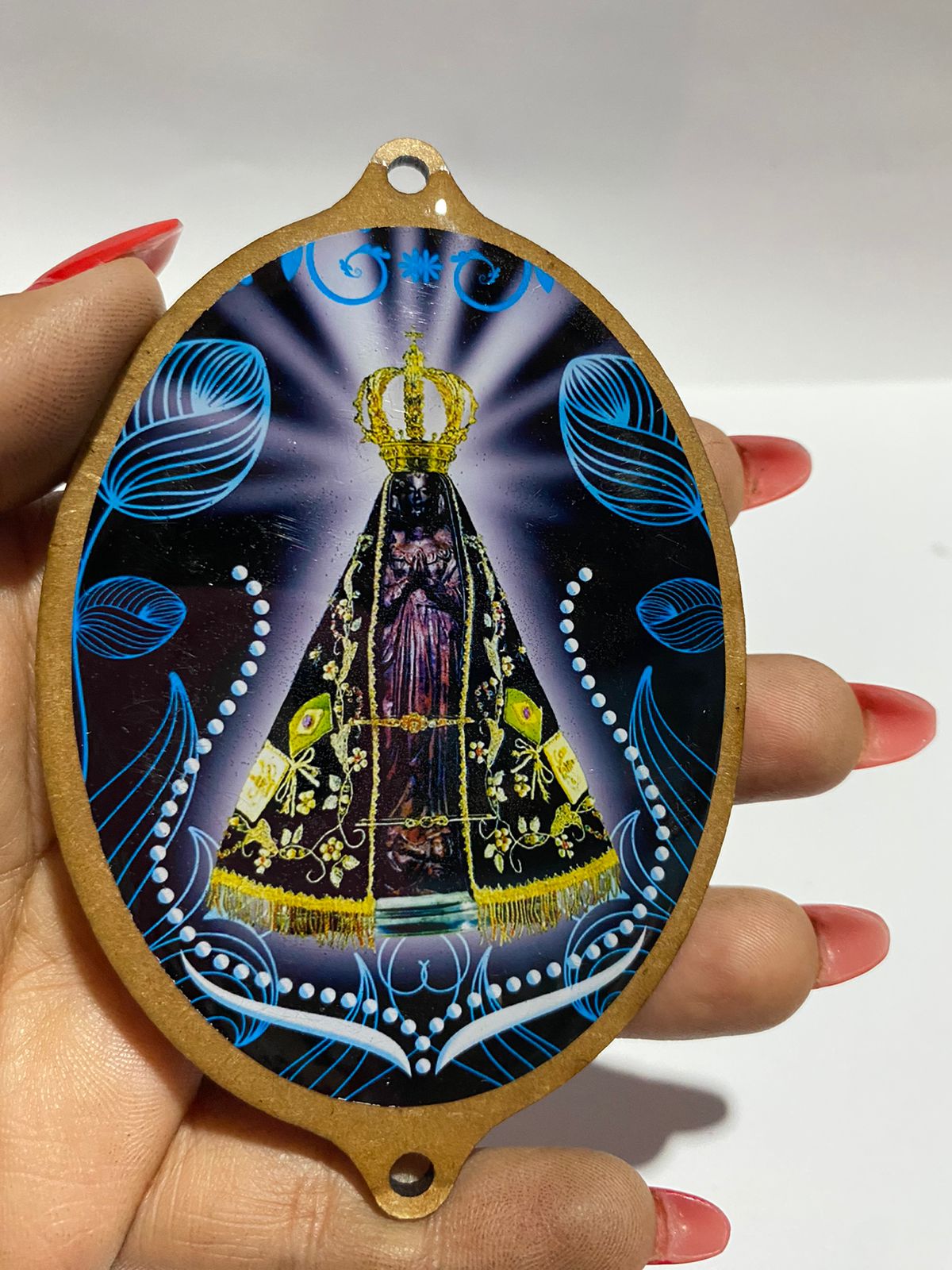 Medalha em madeira com acabamento resinado, trazendo brilho e proteção à imagem. No verso, possui a oração, tornando a peça ainda mais especial. Ideal para a confecção de terços de mesa, escapulários de porta, lembrancinhas e artigos religiosos personalizados. Um toque de fé e beleza para suas criações