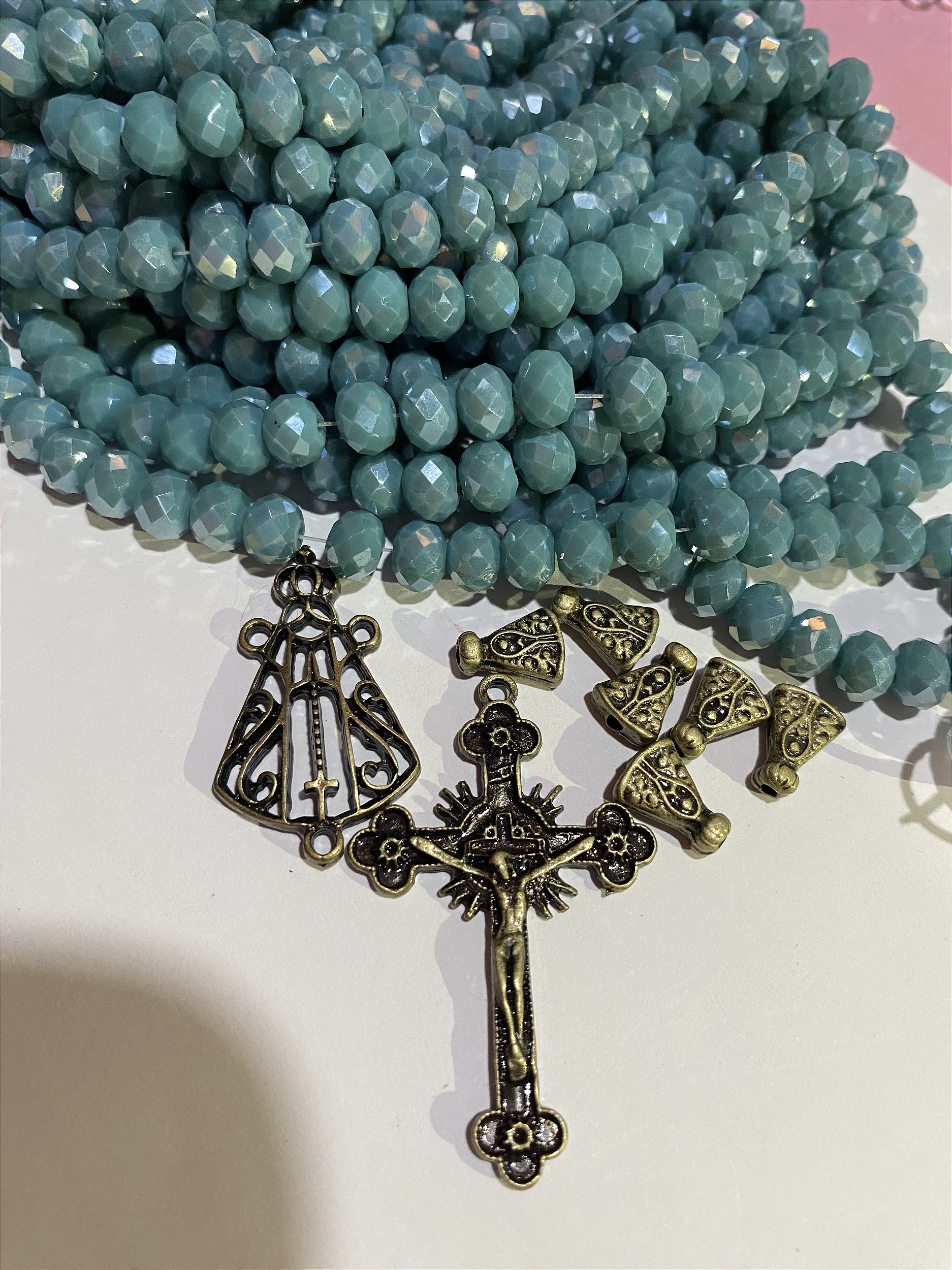 Monte peças únicas com o nosso Kit Terço de Cristal, ideal para artesãs que prezam por qualidade e beleza em cada detalhe.