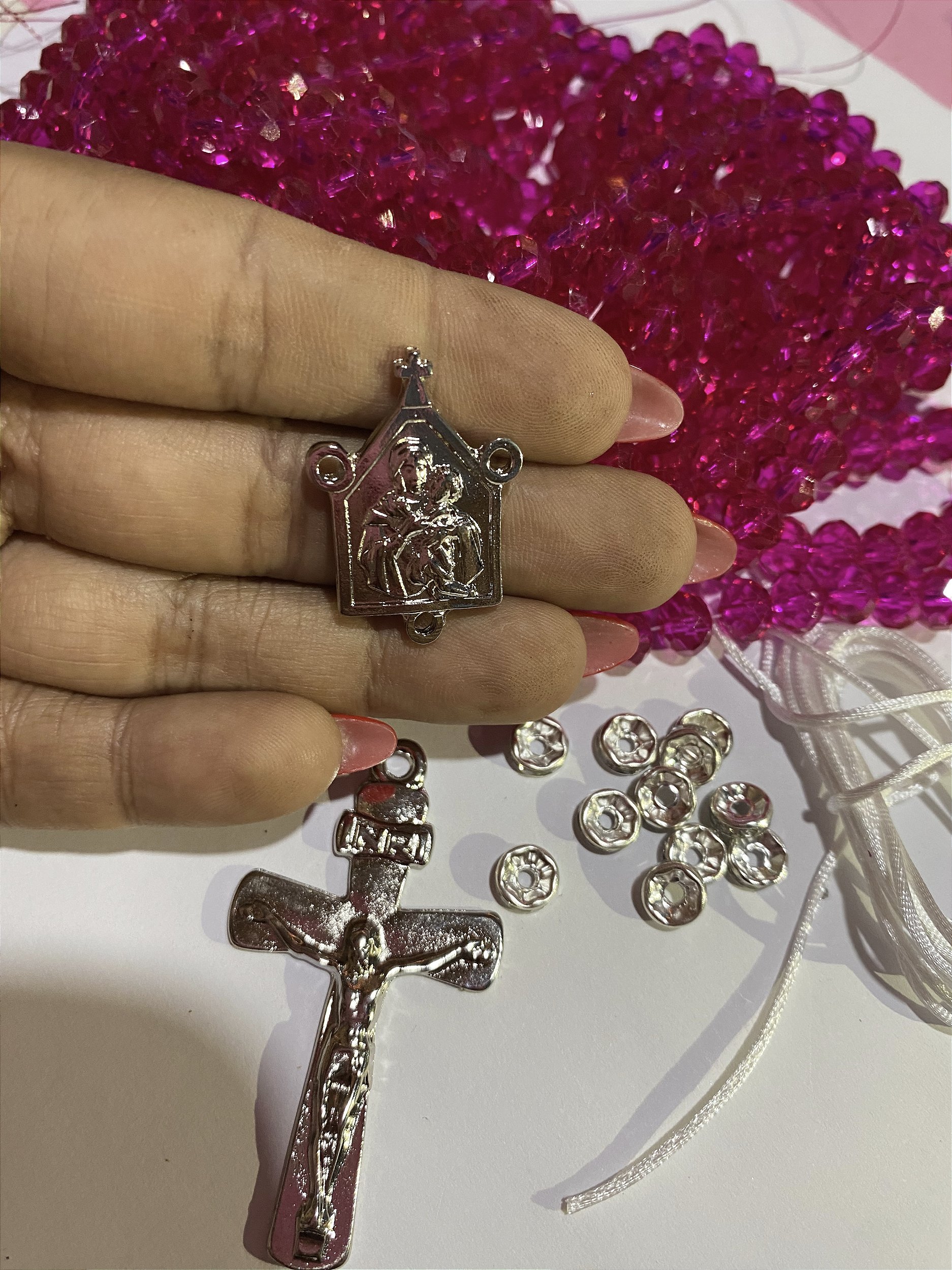 Monte peças únicas com o nosso Kit Terço de Cristal, ideal para artesãs que prezam por qualidade e beleza em cada detalhe.