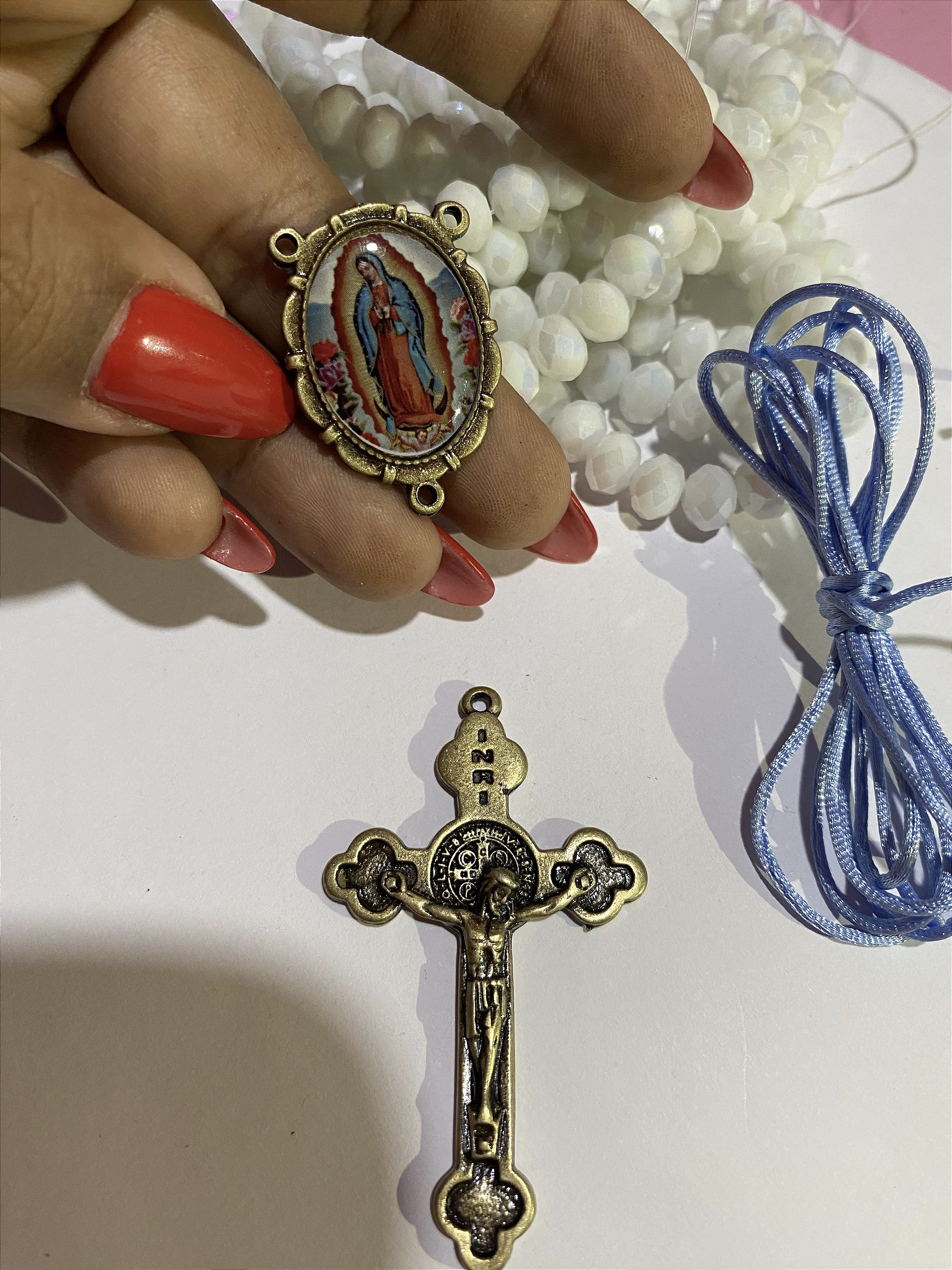 Monte peças únicas com o nosso Kit Terço de Cristal, ideal para artesãs que prezam por qualidade e beleza em cada detalhe.