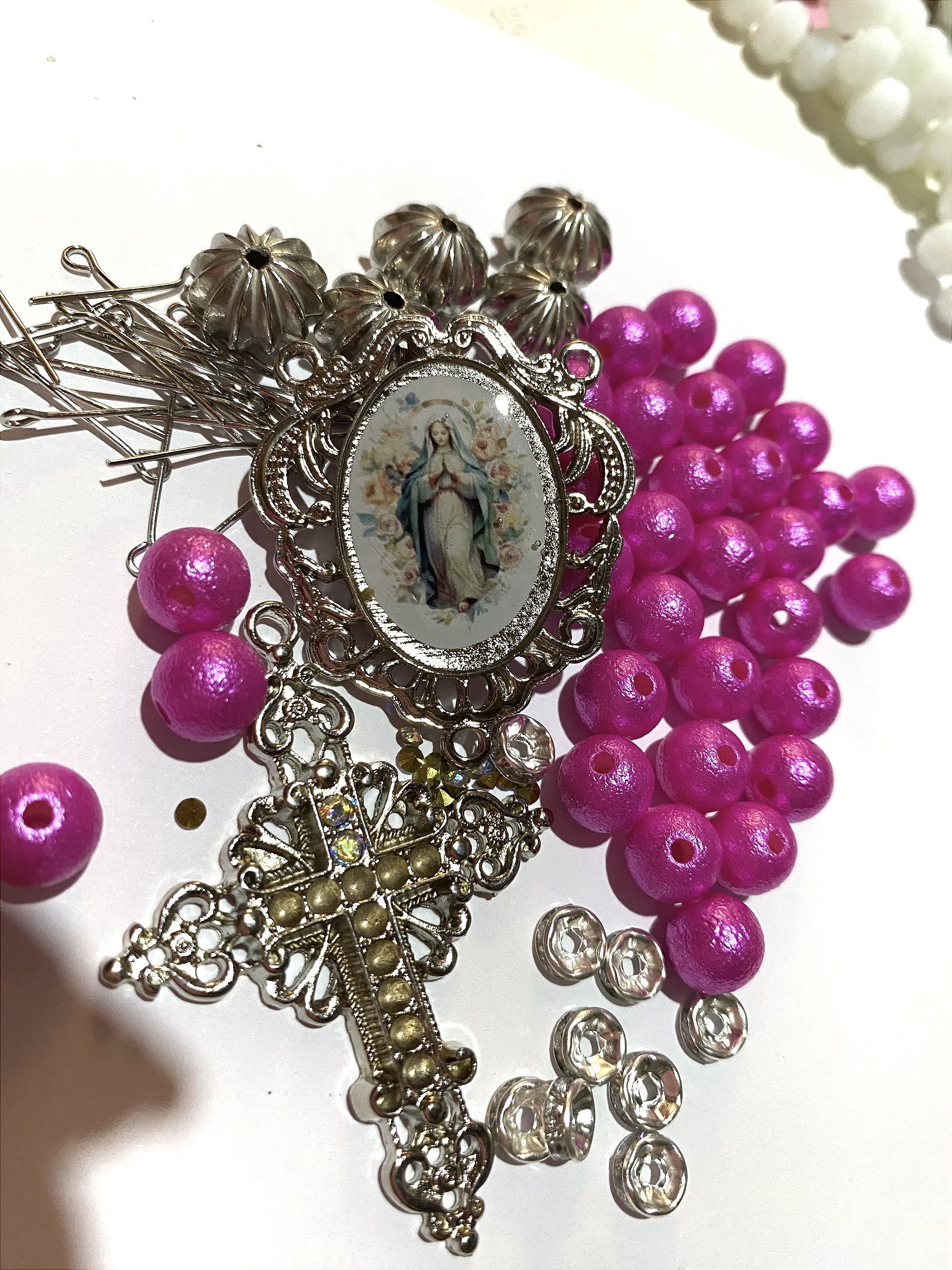 O kit vai com todo material para montar um terço