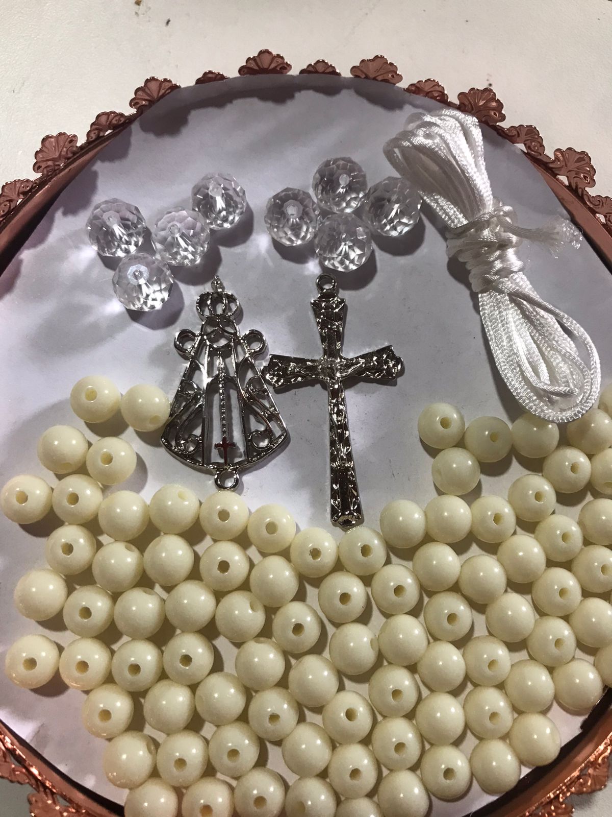 KIT TERÇO AMARELO OFF COM ENTREMEIO E CRUZ PRATA