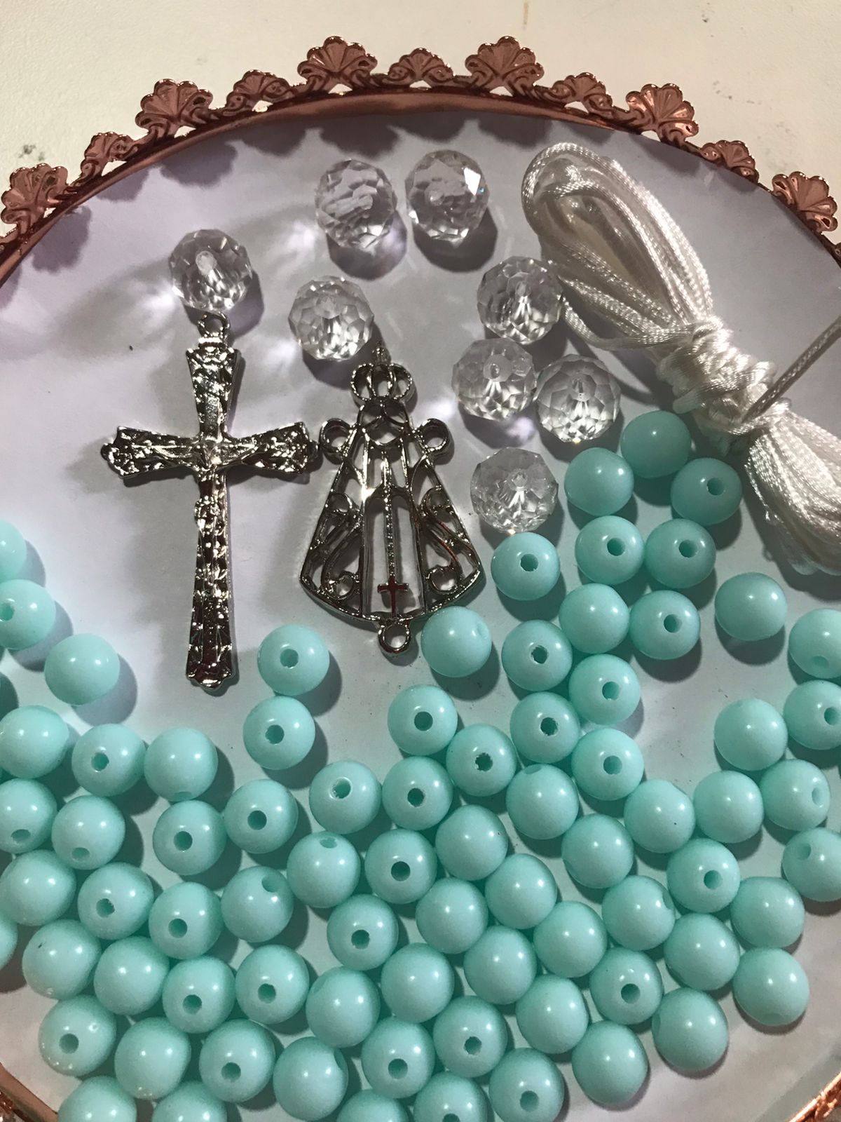 KIT TERÇO AZUL BEBÊ COM ENTREMEIO E CRUZ PRATA
