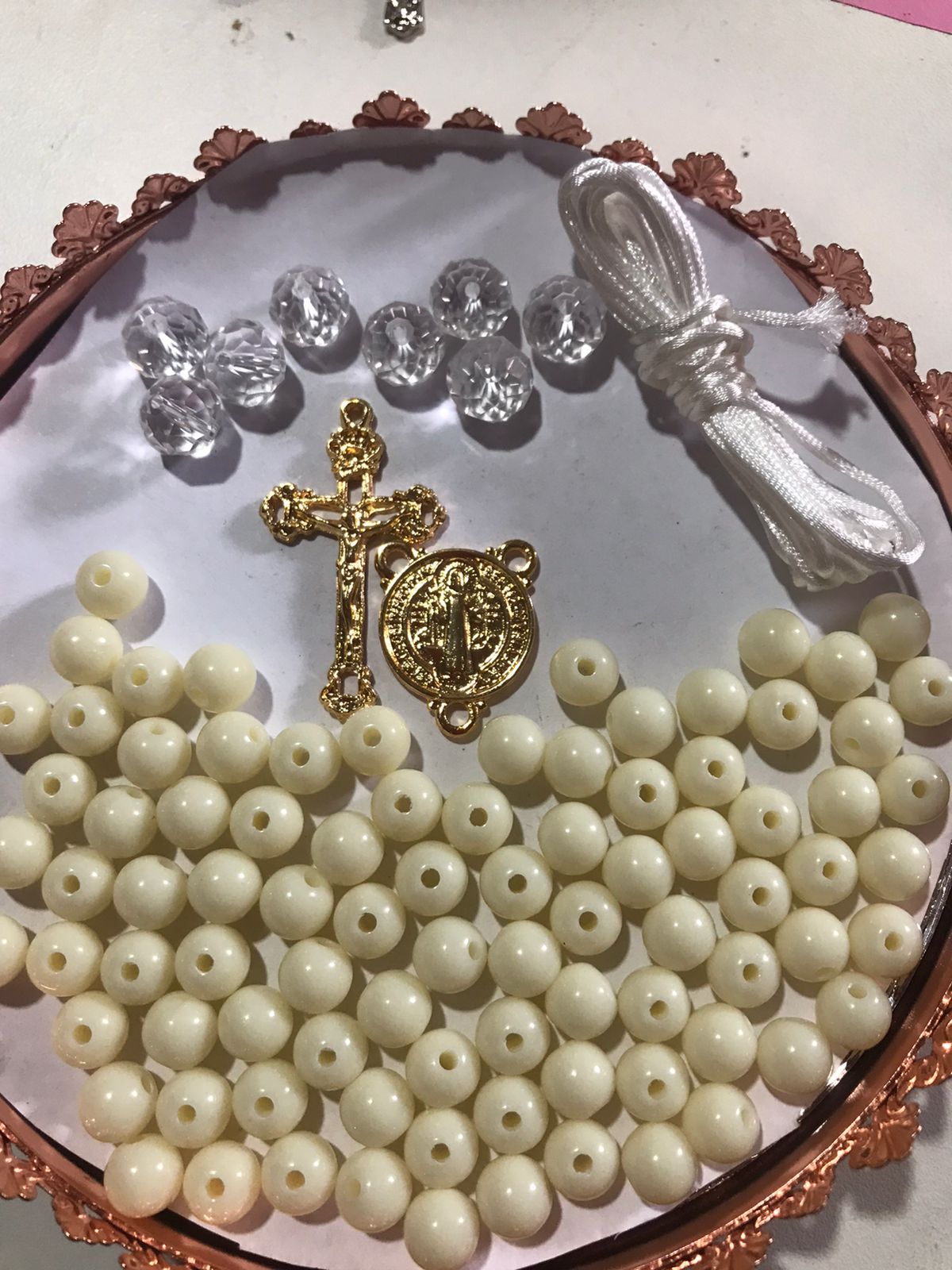 KIT TERÇO AMARELO OFF COM ENTREMEIO E CRUZ DOURADO